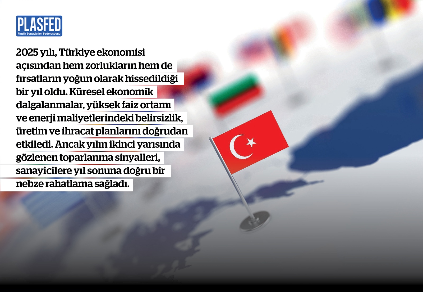 Ekonomistlerin ve sektör temsilcilerinin değerlendirmelerine göre, tüm zorluklara rağmen 2025 yılı Türkiye sanayisinin dayanıklılığını bir kez daha gösterdi. Hakan Güldağ, kurdaki dalgalanmalara rağmen ihracat performansının yıl genelinde iyileştiğine dikkat çekerken; Erhan Aslanoğlu, 2025’in küresel ölçekte hem ekonomik hem de jeopolitik açıdan son derece kritik gelişmelere sahne olduğunu belirtti. Efe Gökçe ise 2025’i, Türkiye ekonomisi ve plastik sektörü açısından “bir sınav ve uyanış yılı” olarak tanımladı.Şevket Sayılgan’a göre ise döviz baskısı, yüksek faiz ve kalıcı enflasyon arasında denge arayışını sürdüren Türkiye ekonomisi, yılı yaklaşık yüzde 4 büyümeyle tamamlarken 2026’ya temkinli ama umutlu beklentilerle giriyor.